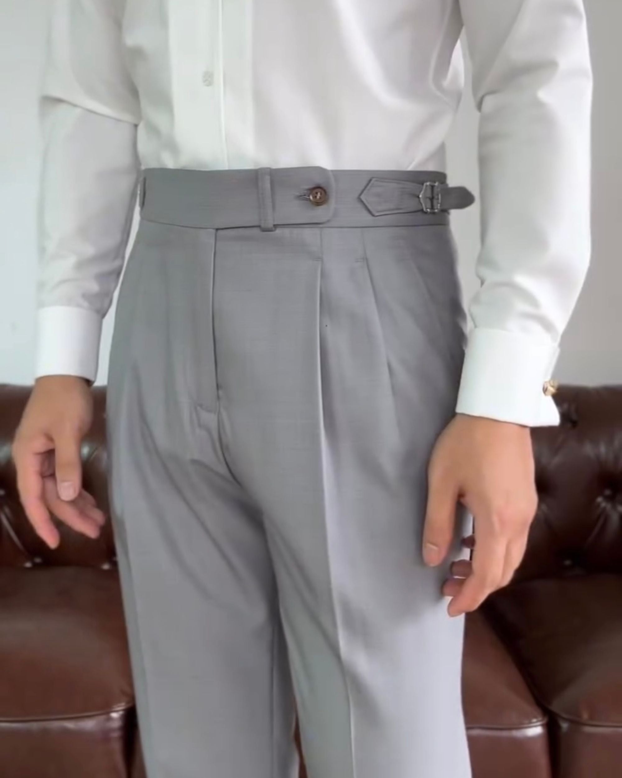 Classic Gray Buckle Formal Gurkha Pants by ARVIANO